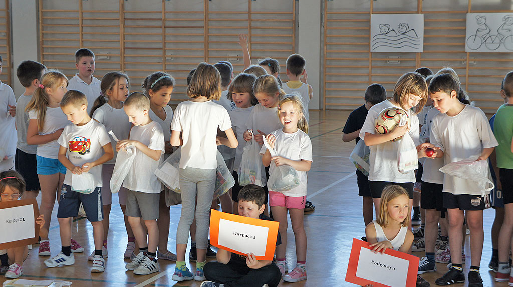 09.11.2011. Nasza szkoła była dzisiaj gospodarzem Międzyszkolnego Turnieju Sportowego "Zawsze Sprawny Dolnoślązaczek". W zawodach wzięło udział 7 drużyn (w tym dwie nasze) składających się z dzieci z klas I - III. Drużyna, w której startowało dwoje dzieci z naszej klasy - Alinka i Piotruś była najlepsza i ostatecznie zajęła I miejsce! W drugiej drużynie walczyła nasza Julcia D. Pozostałe dzieci z klasy kibicowały i dopingowały nas z trybun. Była świetna zabawa a na koniec dyplomy i nagrody. Zrobimy wszystko, by w kolejnych zawodach zdobyć również jak najlepsze miejsce.