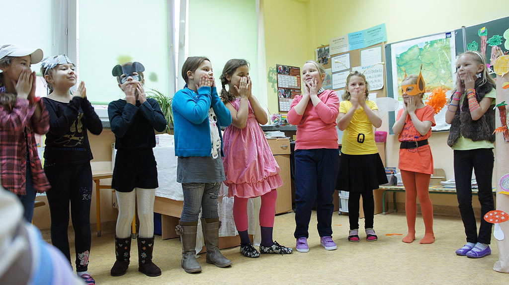 09.11.2012. "Co słychać w lesie?". Dzisiaj w naszej klasie spotkaliśmy się wraz z naszymi rodzicami z dwóch powodów. Po pierwsze przygotowaliśmy jesienne przedstawienie z licznymi wierszykami i piosenkami. Niektórzy z nas byli poprzebierani za zwierzątka, a wspólnie zrobiliśmy własnoręcznie wykonaną dekorację do występów. Na koniec otrzymaliśmy bardzo długie brawa, więc chyba się podobało. Poza tym razem z rodzicami zjedliśmy energetyczne śniadanko, przygotowane przez naszą panią i niektóre mamy - dziękujemy.