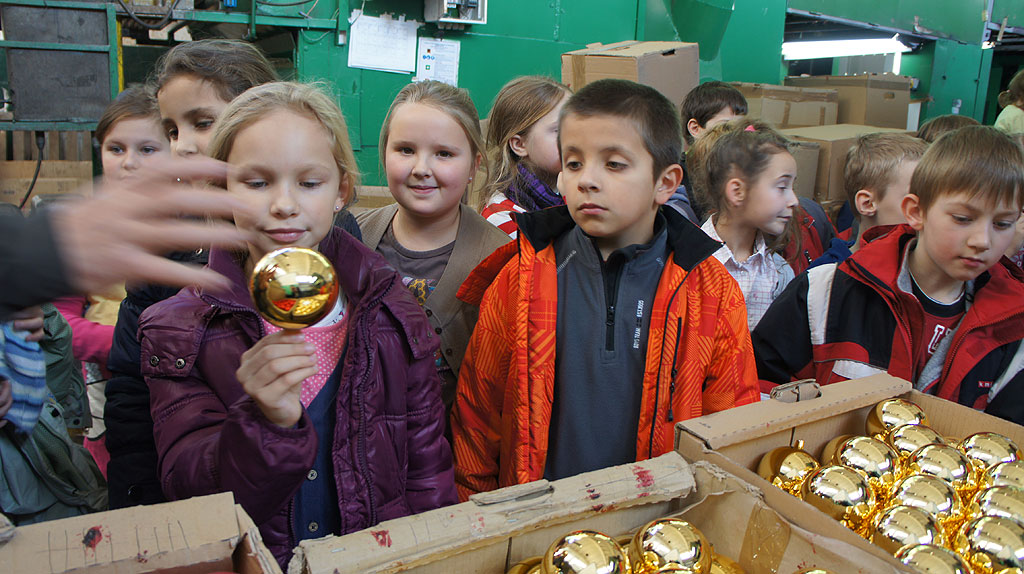 21.11.2012. Jadąc do fabryki bombek w Złotoryi myśleliśmy, że zobaczymy tam dużo komputerów i maszyn produkujących świecidełka. Jednak nic takiego tam nie było. To magiczne miejsce, w którym czuć obecność Mikołaja i Świąt. Pracownicy, którzy są jak Elfy przeprowadzili nas przez wszystkie etapy produkcji najpiękniejszych bombek choinkowych. Na koniec wycieczki odwiedziliśmy sklep pełen najróżniejszych bombek, w którym każdy odnalazł coś wyjątkowego dla siebie.