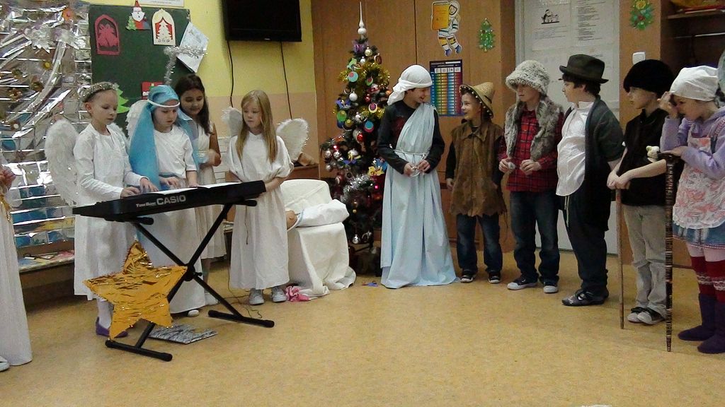 20.12.2012. Świąteczny nastrój czuje się wszędzie. My również nie mogliśmy się temu oprzeć i aby podtrzymać tradycję jasełek zaprosiliśmy naszych najbliższych na przedstawienie. Przygotowaliśmy kilka kolęd oraz opowiedzieliśmy historię narodzenia małego Jezuska. Na deser bawiliśmy się w malowanie i dekorowanie pierniczków na choinkę - było pysznie. Jeszcze raz życzymy wszystkim Wesołych Świąt!