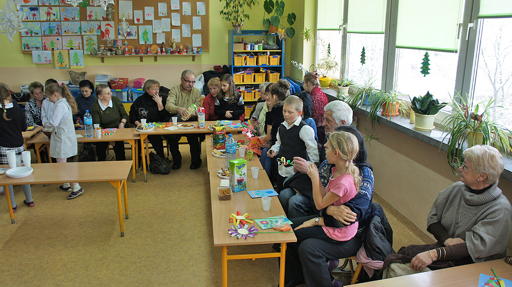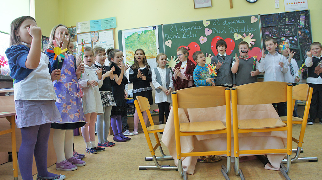22.01.2013. Dziasiaj zaprosiliśmy nasze kochane Babcie i kochanych Dziadków na specjalnie dla nich przygotowane przedstawienie. Wprawdzie mieliśmy mało czasu na przygotowanie się do niego, ale wszystko udało się - zaproszeni goście byli zachwyceni, klaskali nawet w trakcie piosenek. Po występie wręczyliśmy naszym Babciom i Dziadkom własnoręcznie wykonane kwiatki i laurki. Wspólnie spędziliśmy miło czas przy małym poczęstunku. Dziękujemy, że jesteście!