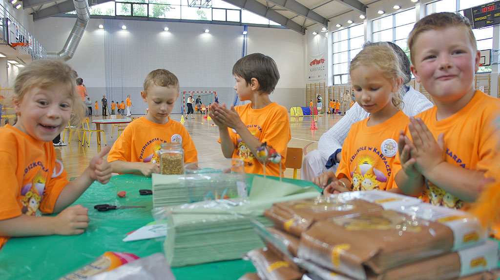 18.06.2011. W Hali Sportowo – Widowiskowej w Karpaczu odbyła się Olimpiada Przedszkolna w ramach projektu „Skrzaty w Europie – 2 Etap”. Program ten realizowany był w naszym przedszkolu, a dzięki niemu mogliśmy brać udział w wielu ciekawych projektach i zajęciach. Na Olimpiadzie były również dzieci z zaprzyjaźnionego przedszkola w Reichenbach w Niemczech. Bawiliśmy się doskonale, zabawa dała nam wiele zadowolenia i wspaniałej rywalizacji. Po zawodach mieliśmy jeszcze piknik na placu zabaw naszego przedszkola, była wata cukrowa i popcorn oraz nagrody za uczestnictwo w olimpiadzie.