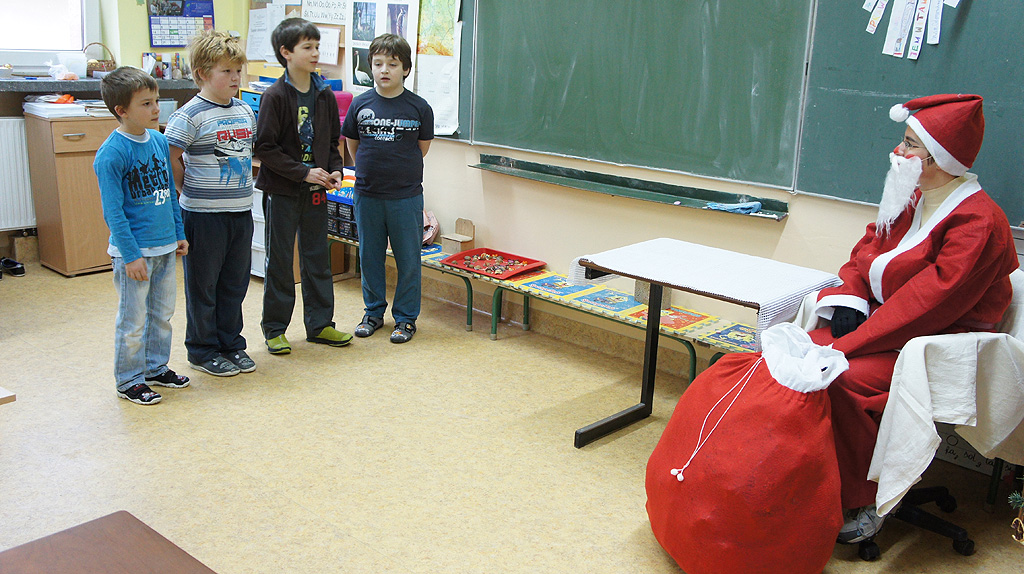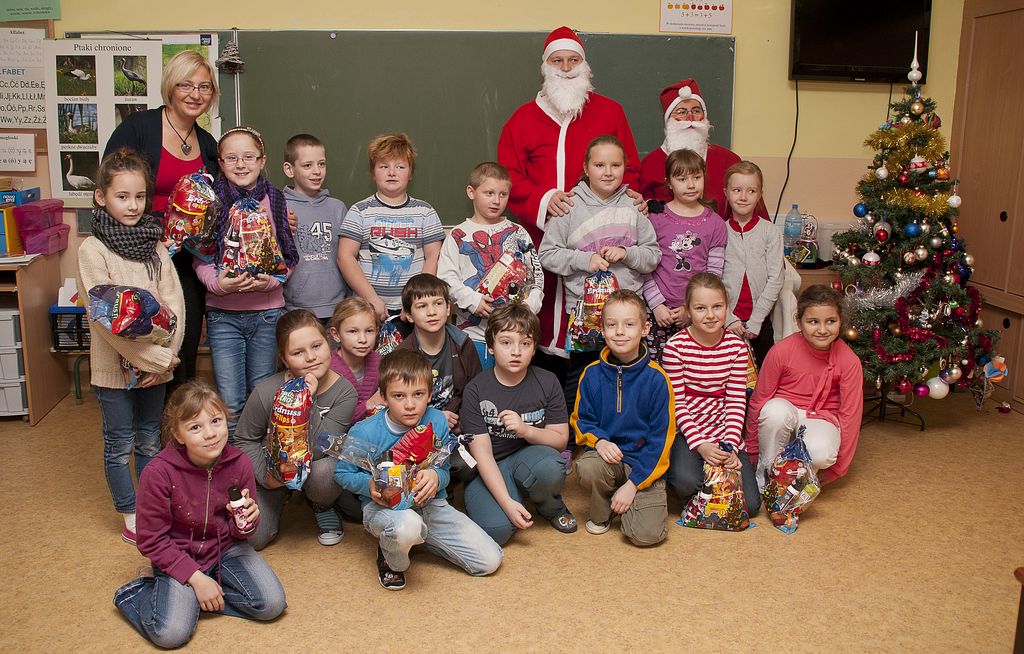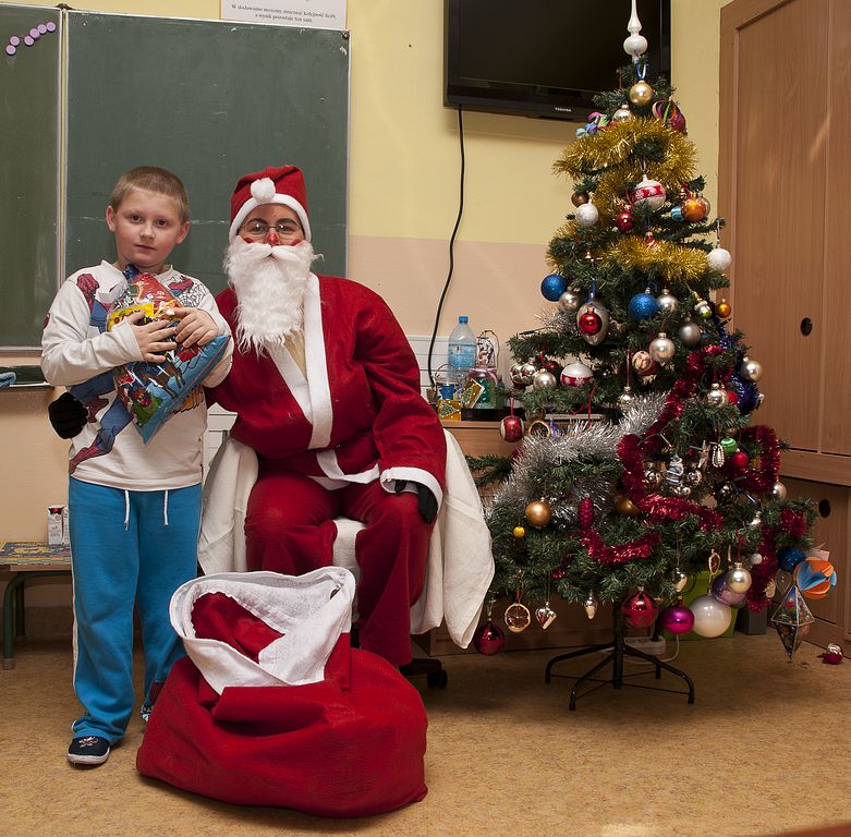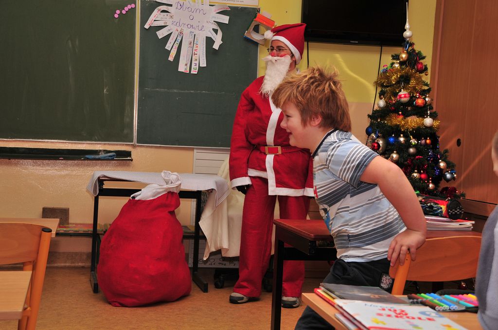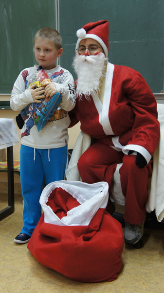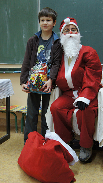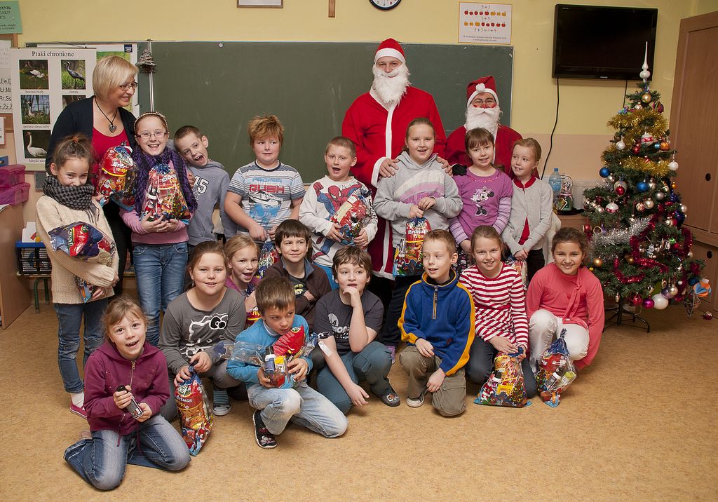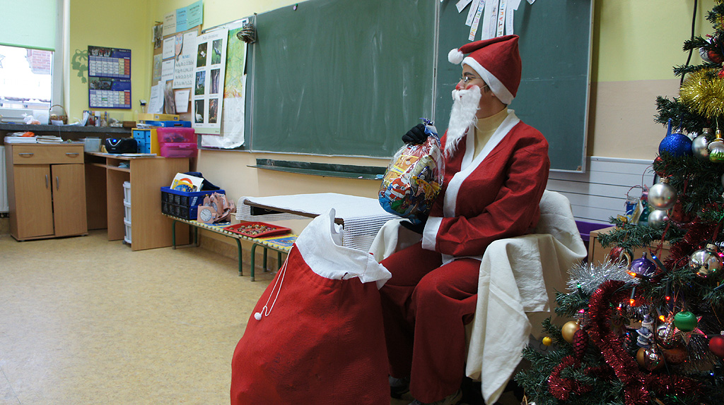 06.12.2012. Większość z nas dostała już prezenty od Mikołaja dzisiejszej nocy. Czekała nas jednak miła niespodzianka, kiedy w szkole na pierwszej lekcji pojawił się nikt inny jak On - a właściwie Ona - we własnej postaci - Pani Mikołaj. Nasze wprawne oko od razu to dostrzegło - to Mama Dominiki! No, ale ktoś musiał nam przekazać prezenty. Byliśmy przygotowani na ewentualną wizytę Mikołaja, więc odśpiewaliśmy piosenki, a potem cieszyliśmy się z pysznej zawartości naszych paczek. Było super fajnie!