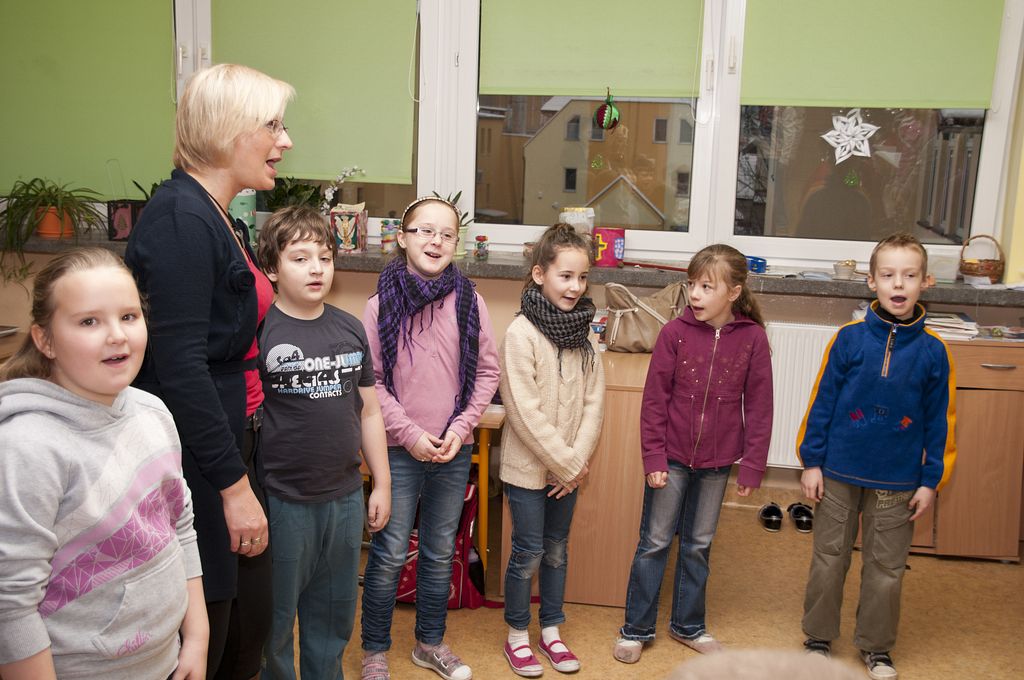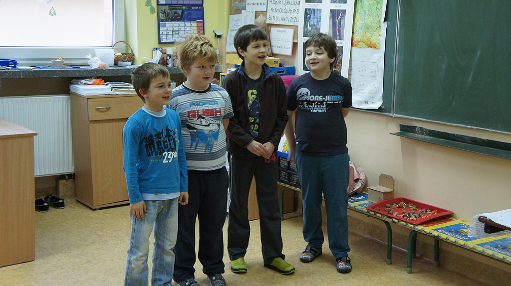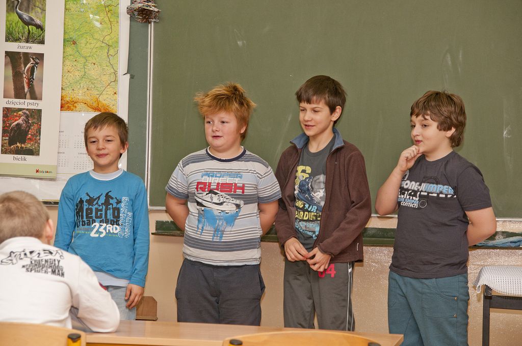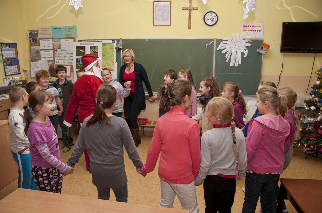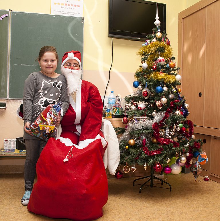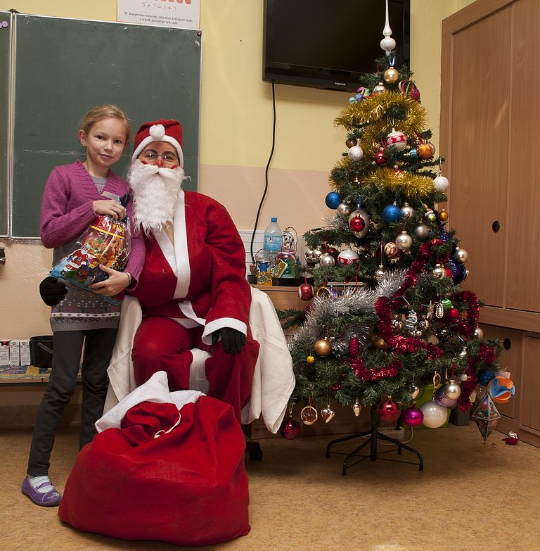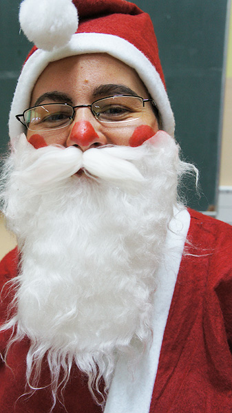 06.12.2012. Większość z nas dostała już prezenty od Mikołaja dzisiejszej nocy. Czekała nas jednak miła niespodzianka, kiedy w szkole na pierwszej lekcji pojawił się nikt inny jak On - a właściwie Ona - we własnej postaci - Pani Mikołaj. Nasze wprawne oko od razu to dostrzegło - to Mama Dominiki! No, ale ktoś musiał nam przekazać prezenty. Byliśmy przygotowani na ewentualną wizytę Mikołaja, więc odśpiewaliśmy piosenki, a potem cieszyliśmy się z pysznej zawartości naszych paczek. Było super fajnie!