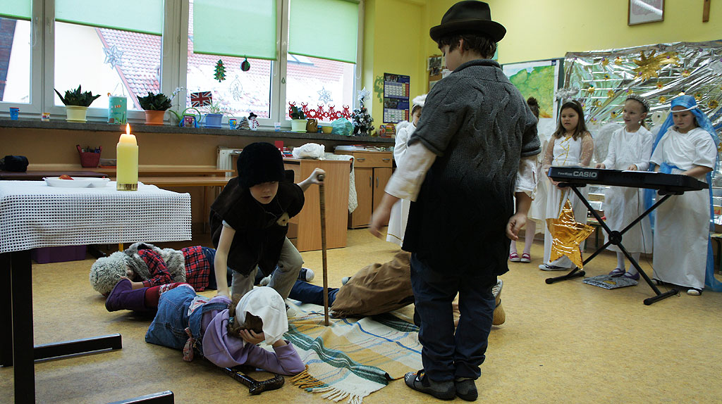 20.12.2012. Świąteczny nastrój czuje się wszędzie. My również nie mogliśmy się temu oprzeć i aby podtrzymać tradycję jasełek zaprosiliśmy naszych najbliższych na przedstawienie. Przygotowaliśmy kilka kolęd oraz opowiedzieliśmy historię narodzenia małego Jezuska. Na deser bawiliśmy się w malowanie i dekorowanie pierniczków na choinkę - było pysznie. Jeszcze raz życzymy wszystkim Wesołych Świąt!