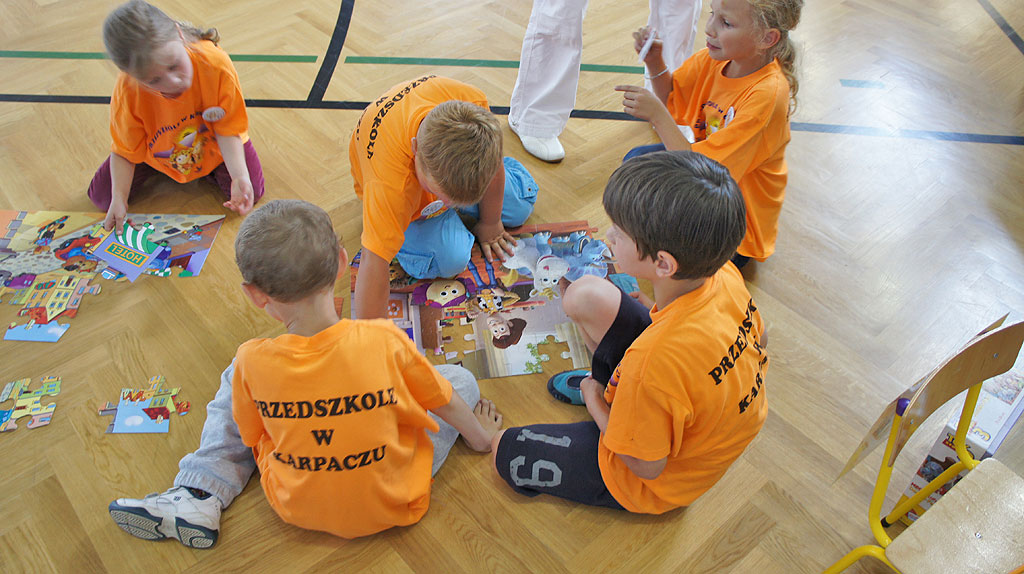 18.06.2011. W Hali Sportowo – Widowiskowej w Karpaczu odbyła się Olimpiada Przedszkolna w ramach projektu „Skrzaty w Europie – 2 Etap”. Program ten realizowany był w naszym przedszkolu, a dzięki niemu mogliśmy brać udział w wielu ciekawych projektach i zajęciach. Na Olimpiadzie były również dzieci z zaprzyjaźnionego przedszkola w Reichenbach w Niemczech. Bawiliśmy się doskonale, zabawa dała nam wiele zadowolenia i wspaniałej rywalizacji. Po zawodach mieliśmy jeszcze piknik na placu zabaw naszego przedszkola, była wata cukrowa i popcorn oraz nagrody za uczestnictwo w olimpiadzie.